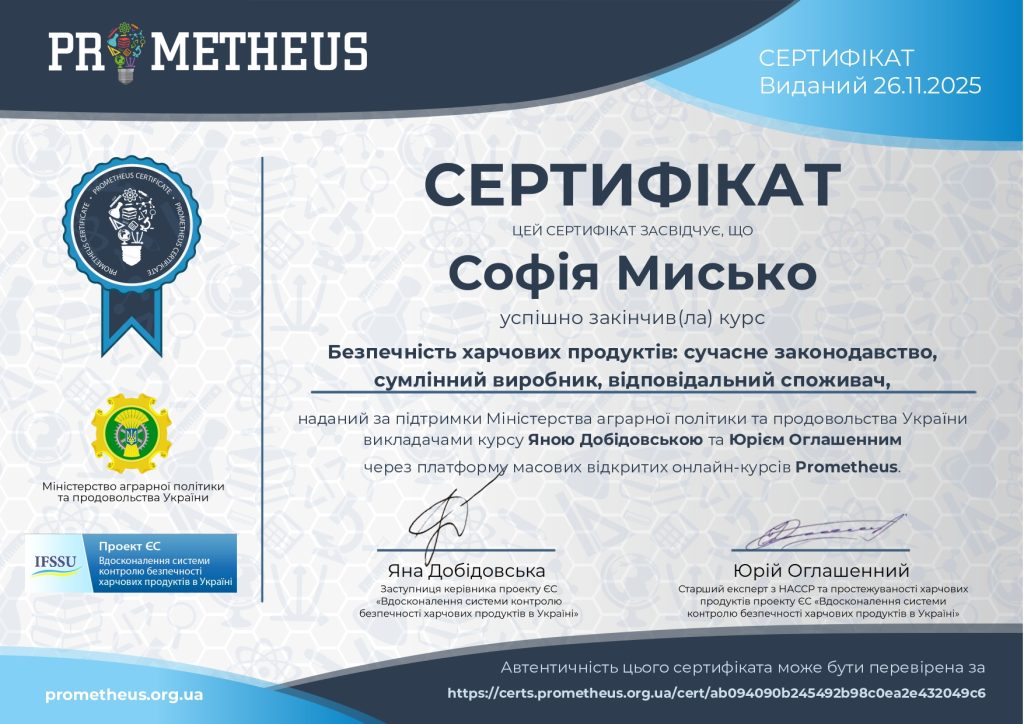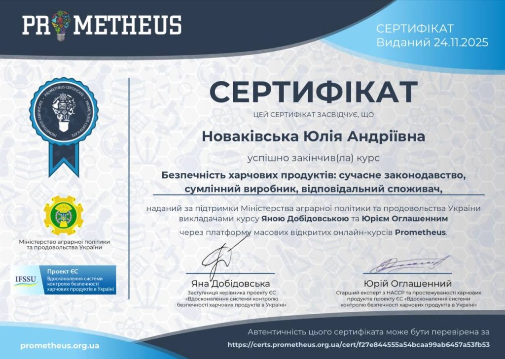 • Освітньо-професійна програма “Технологічна експертиза харчових продуктів”